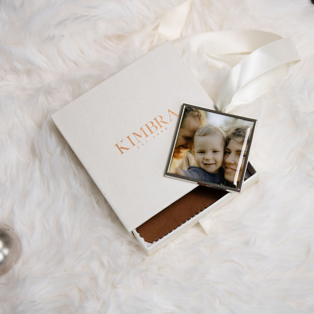 A simply classic way to dress your tree and the perfect way to make any gift extra special with a custom photo tag.