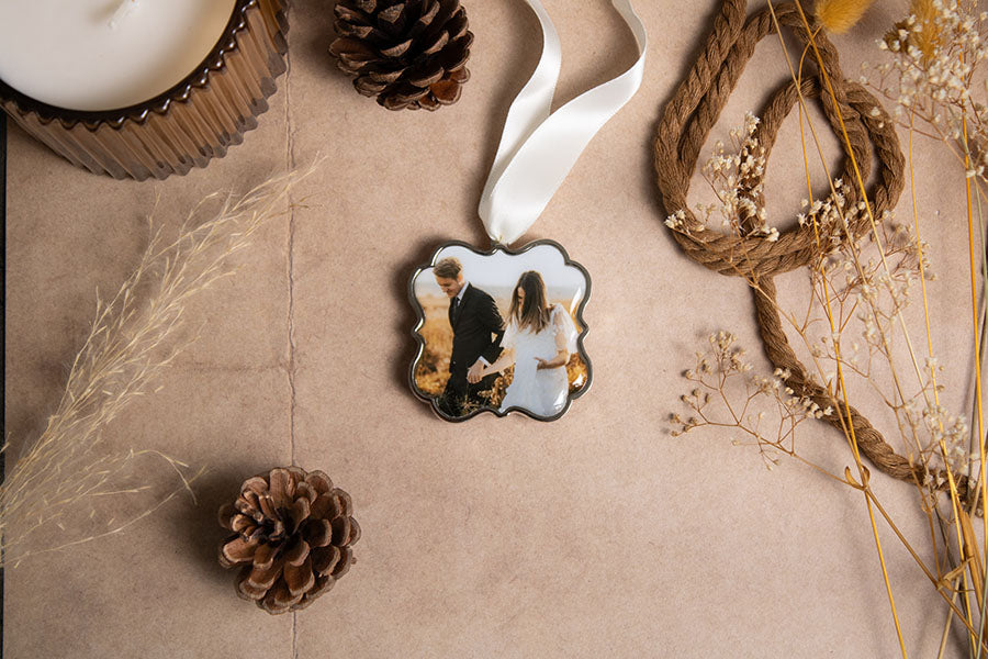 A simply classic way to dress your tree and the perfect way to make any gift extra special with a custom photo tag.